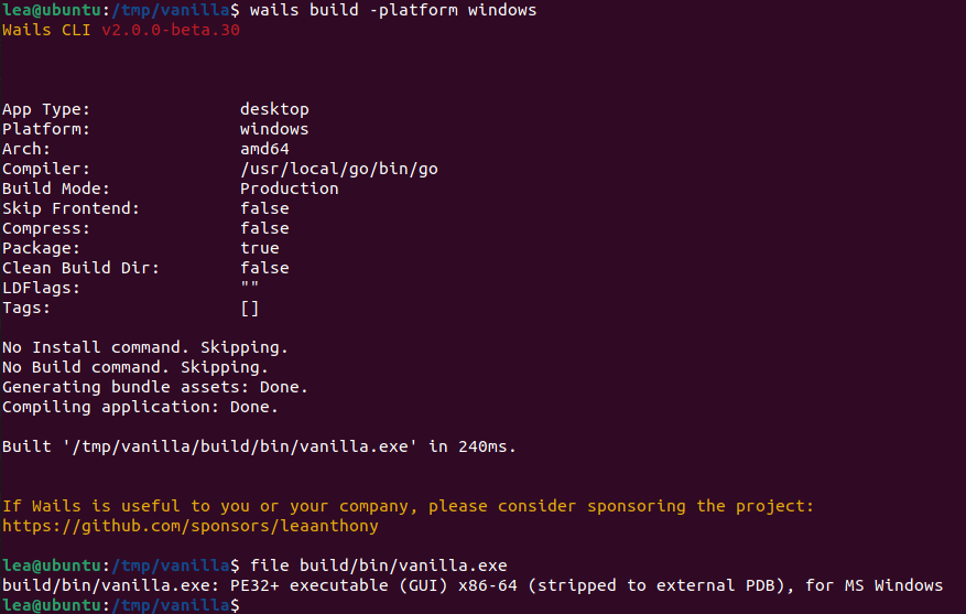 PS: If you or your company find Wails useful, please consider sponsoring the project. Thanks!