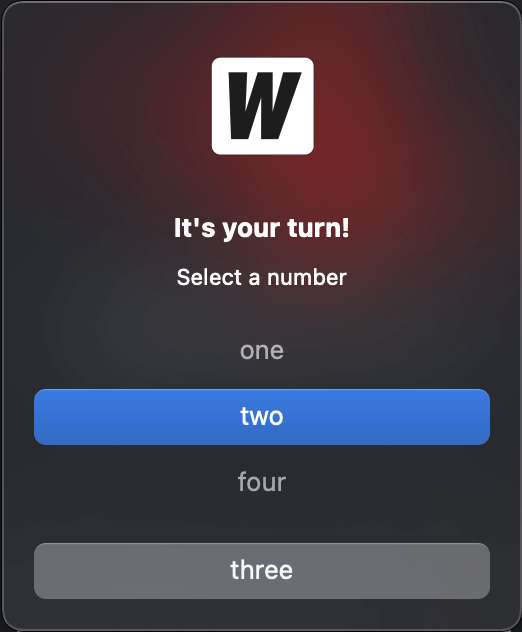Message: "Select a number",